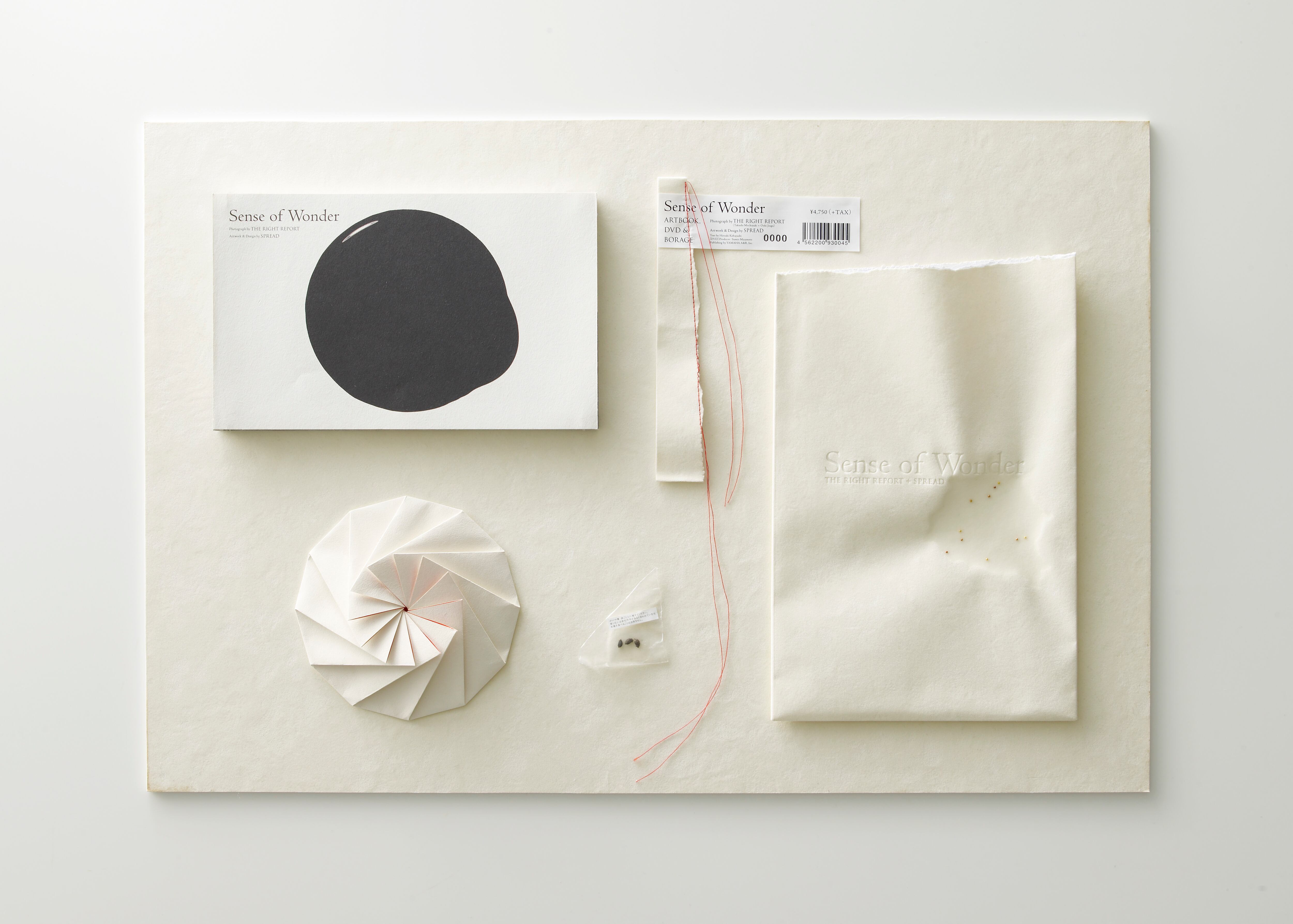 この3点がセットが、肌のように滑らかな紙に種を付着させた種袋型封筒に糸綴じパッケージされています。すべてシリアルナンバー入り。
